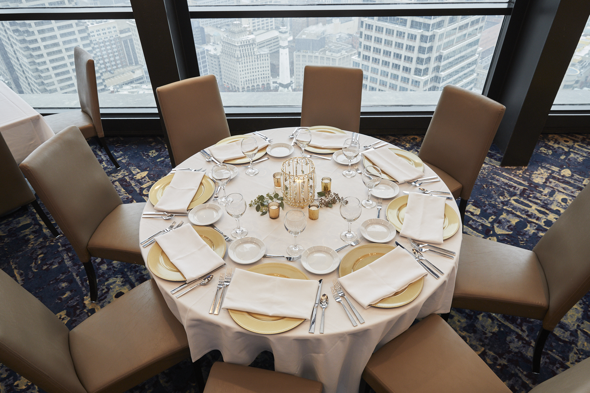Imagine celebrating your wedding day with unparalleled views of Indianapolis and Monument Circle in the background. View at Skyline Club, located on the 36th floor of the OneAmerica Tower, has the best views of the city. View offers the perfect backdrop to your special day and is your destination for an elegant, memorable wedding.